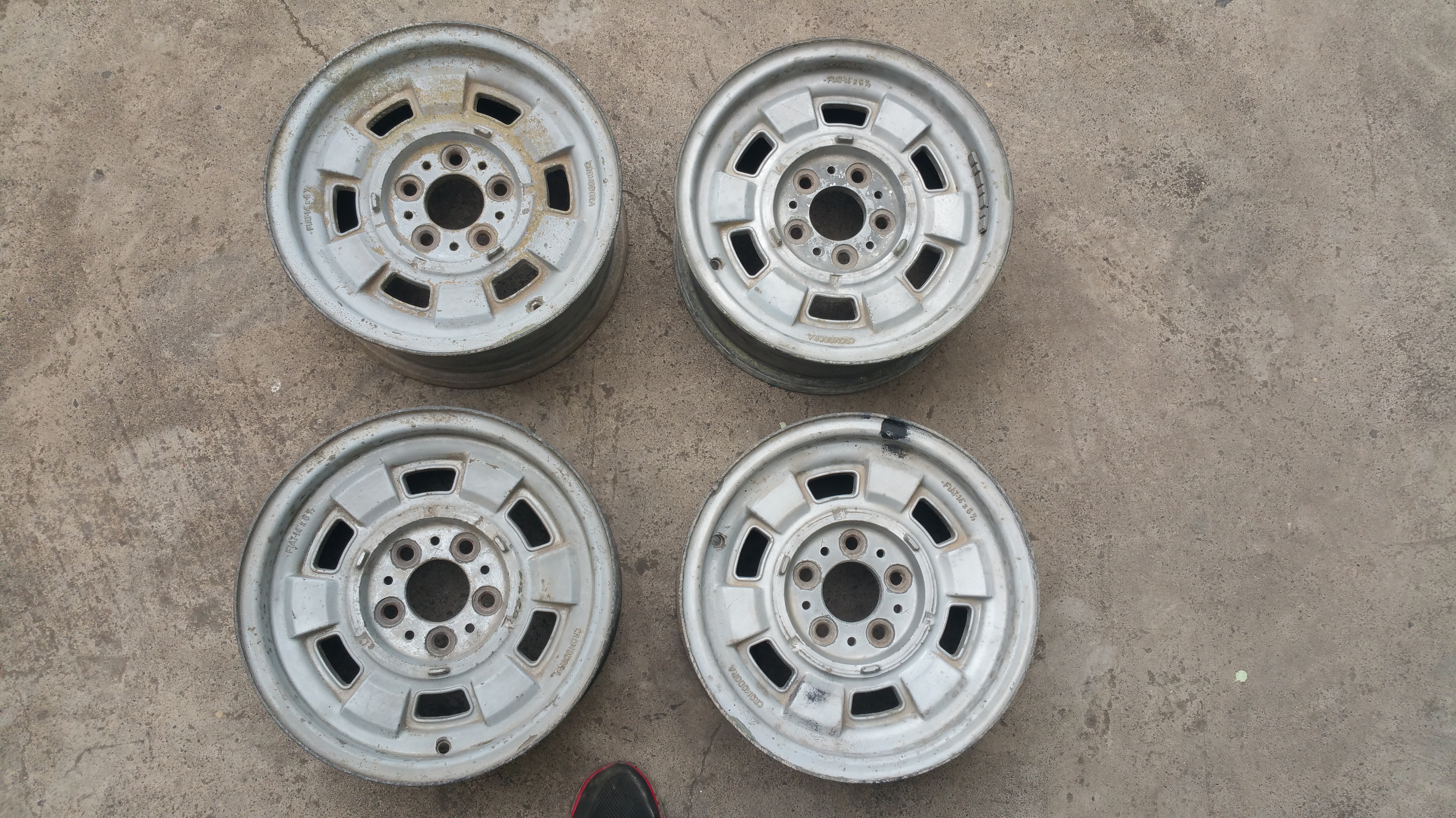 I sell this set of Cromodora CD6 14x6.5 5-Bolt Magnesium Fiat 130 Berlina. The wheels are for restoration and are located in Spain. 550€. Best regards.