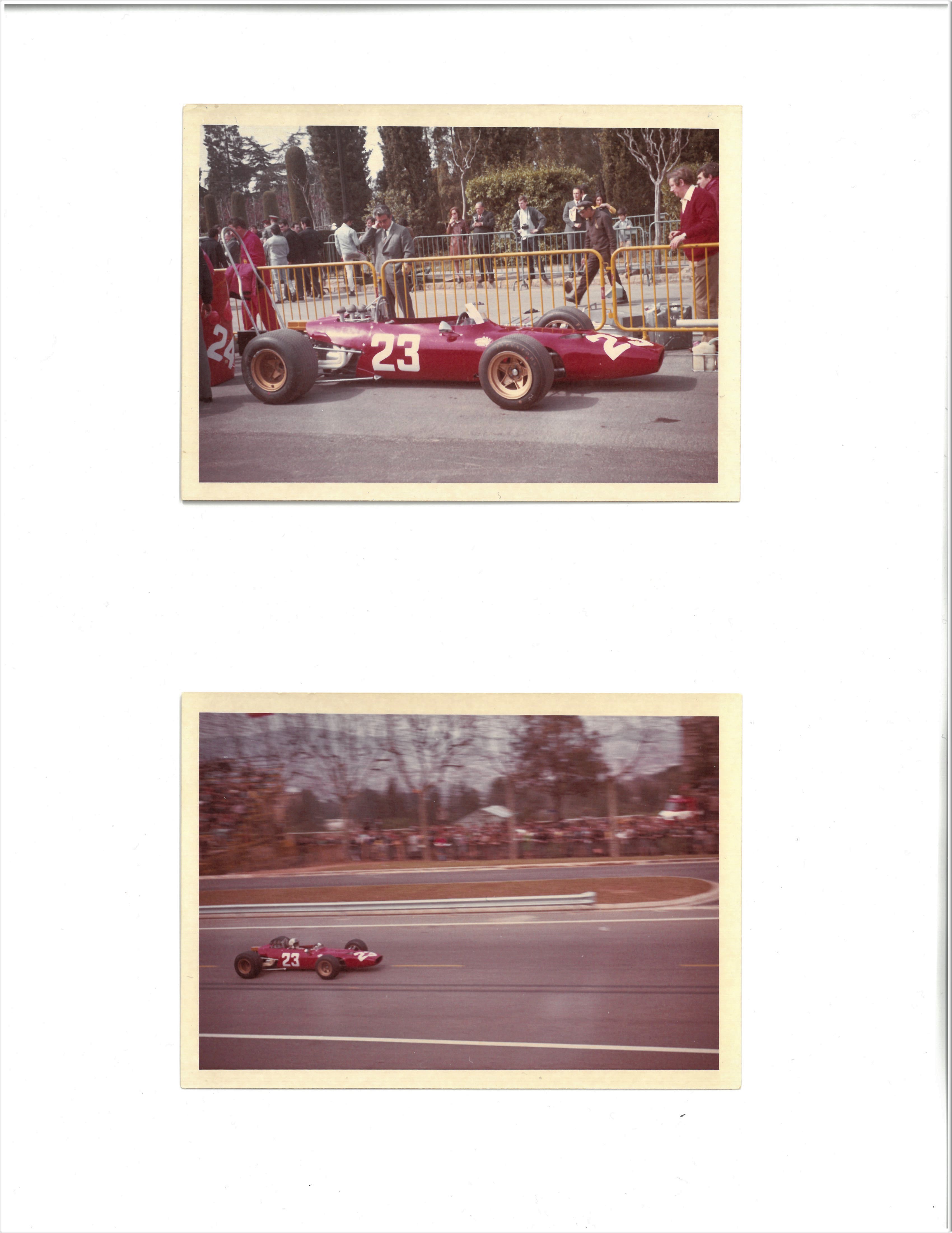 on a different mood, I am attaching a couple of old photographs of a Formula 2 Barcelona GP in 1967 with a Ferrari Dino. Driver was Chris Amon and I believe he finished second or third. Jackie Stewart won. probably first year with the 2 litre engine