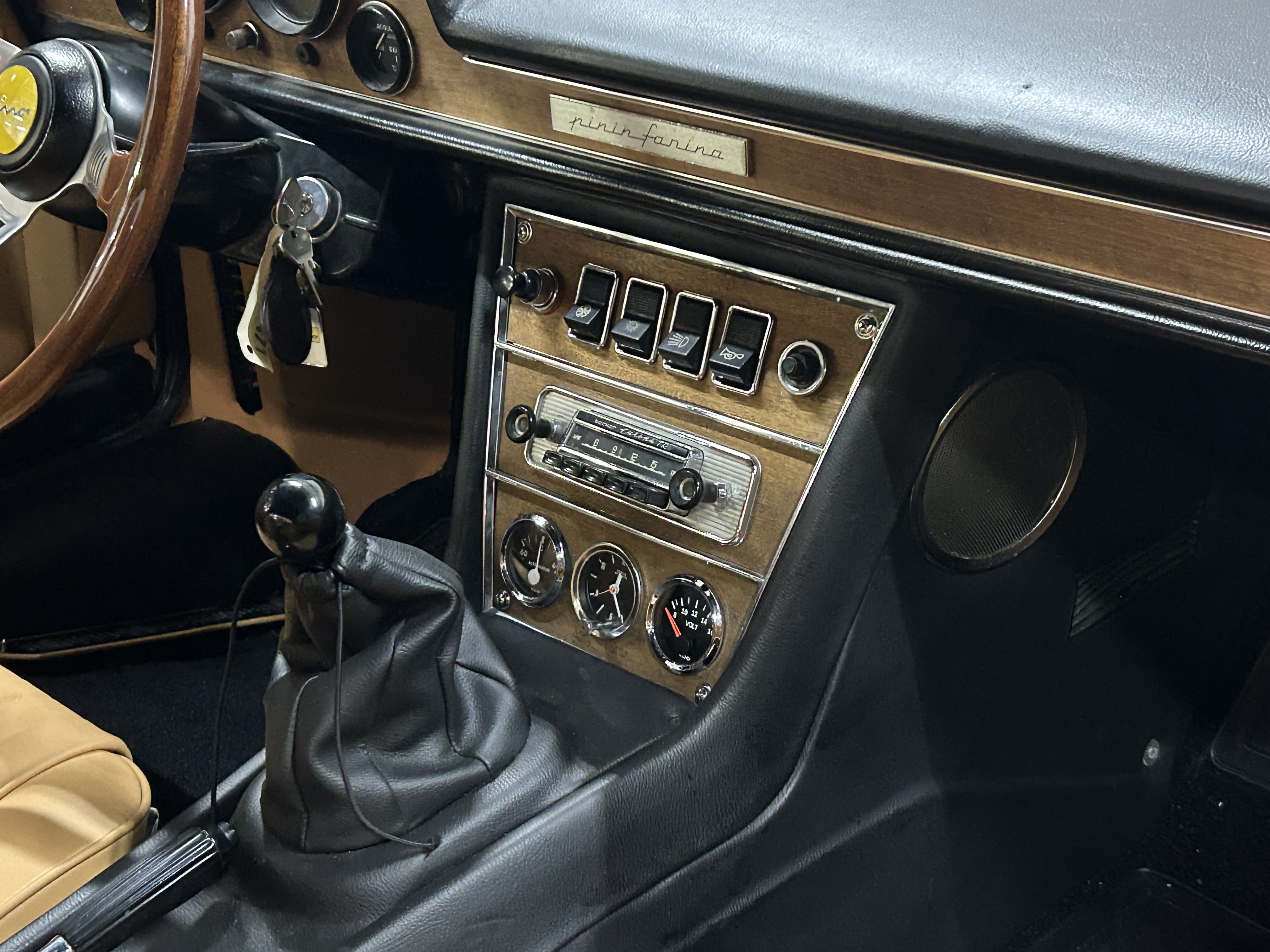 18 months. Getting close now. I think I'll be taking it home this weekend. New leather interior, top, paint, windscreen, wiper mechanism, fuel system, electronic ignition and distributor, clutch, column switches, ignition switch, tail lights, restored steering wheel, and I forgot how many other parts. A basket case becomes a swan. I was lucky. I found one virtually rust free and very complete with a recent rebuilt motor. I have the Fiat Dino Fender badges and Fiat wheel caps. Last things to be installed.