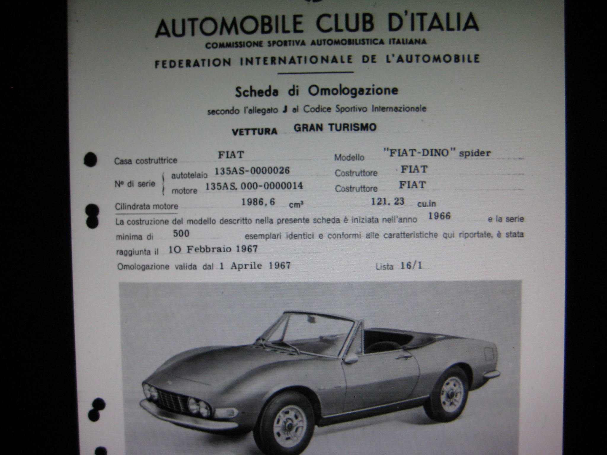 Re: Questions about Fiat Dino Spider first series
