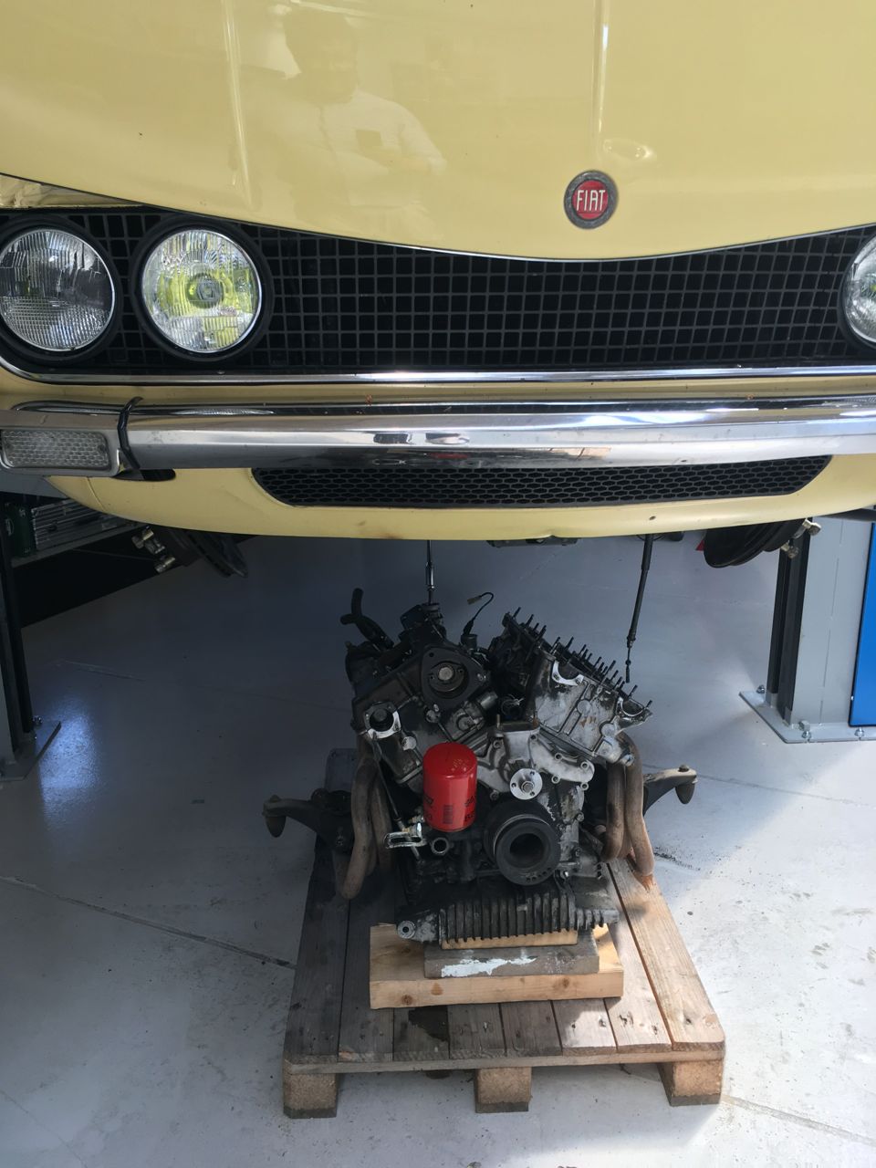 Friday afternoon, and the motor and gearbox was separated, motor, carburetor, starter, Dinoplex etc. was put in a box, and are know ready for pickup this week to come, hopefully it will arrive in Holland within the next 10 days and Nose2Tail Classic Car Engineering will do their magic...