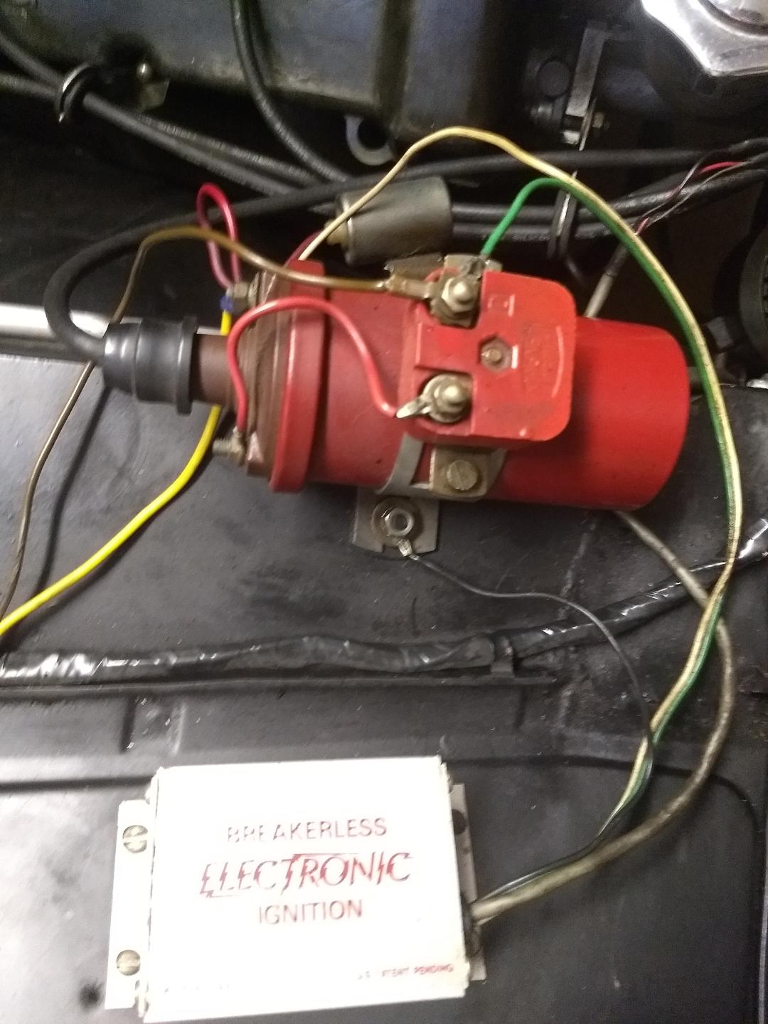 The previous owner fitted an aftermarket electronic ignition many years ago. The car runs GREAT. I am using the recommended spark plugs, and all is well.