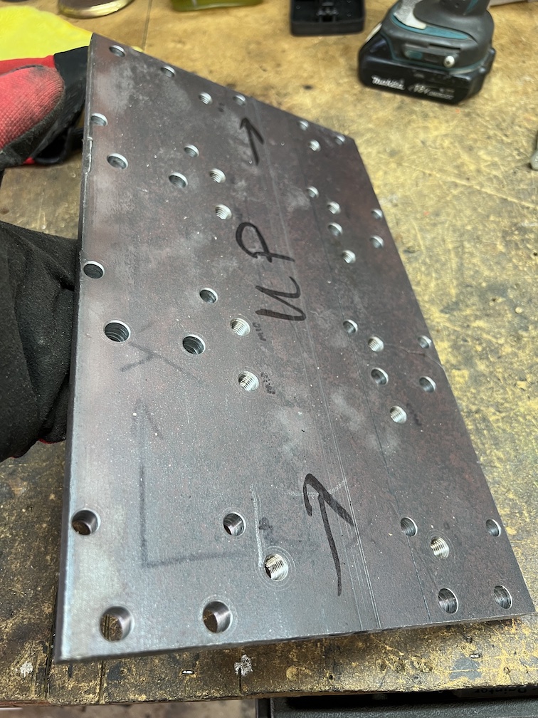 I picked it up today. I suppose I could have tried to do it at home on the drill press - but needing to tap out the 10mm threaded holes made me decide to have it done this way.
