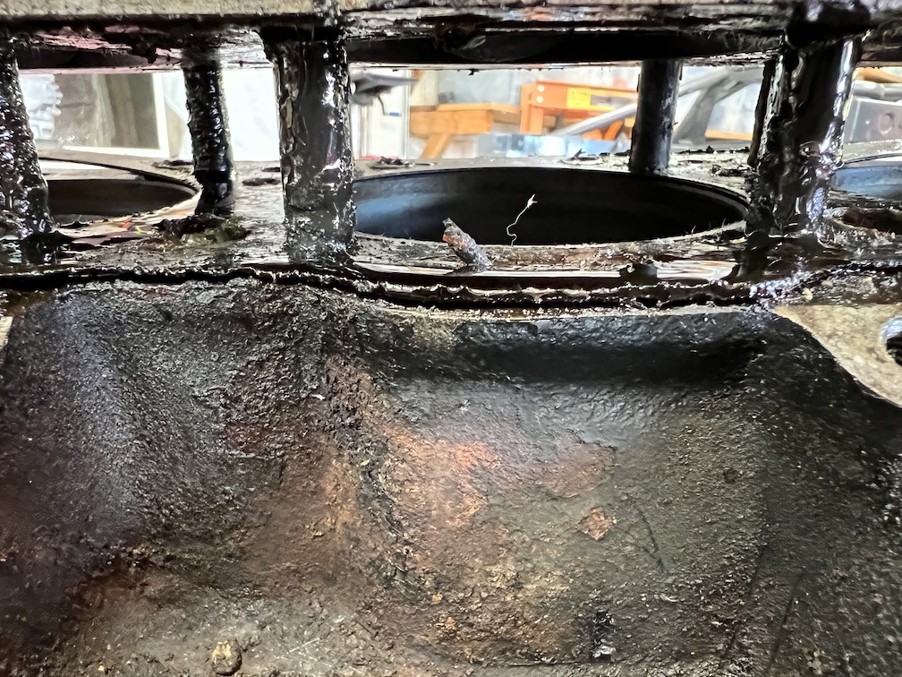 Then began stripping everything down. I'd read about stuck cylinder heads being a big problem, so I was ready for that - but the Right cylinder head (cyl 1,2,3) came off immediately - in fact it almost fell off when I rotated the engine stand.