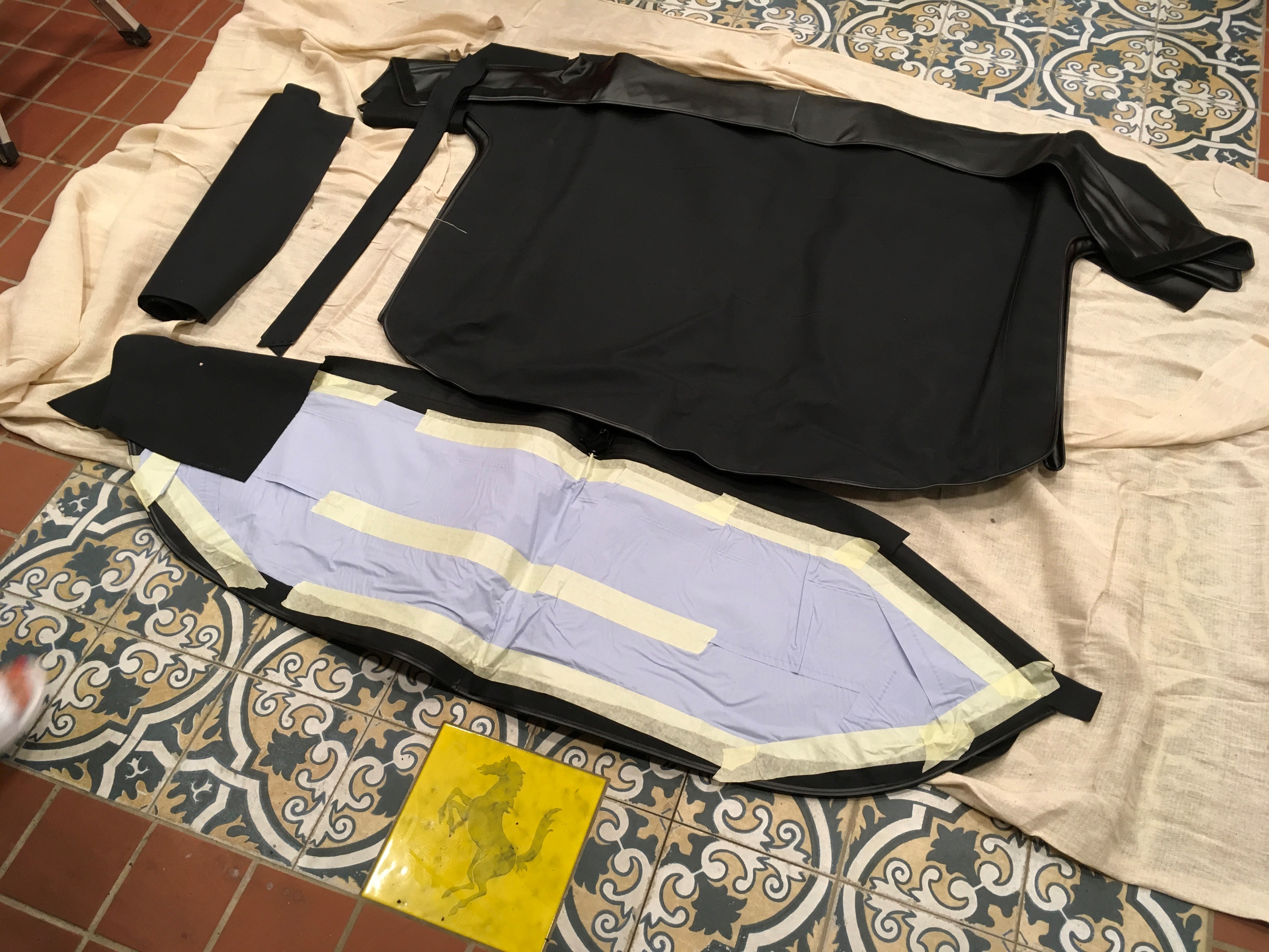 Fiat dino 2.0 spider new hood cover , concours correct with spare hoop fabric.