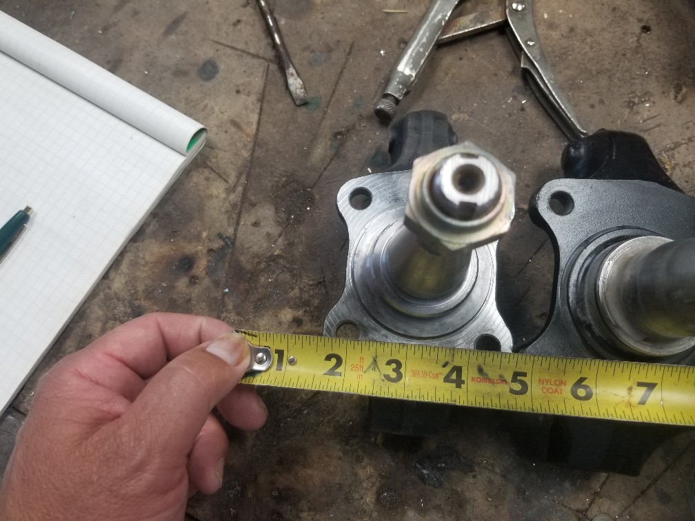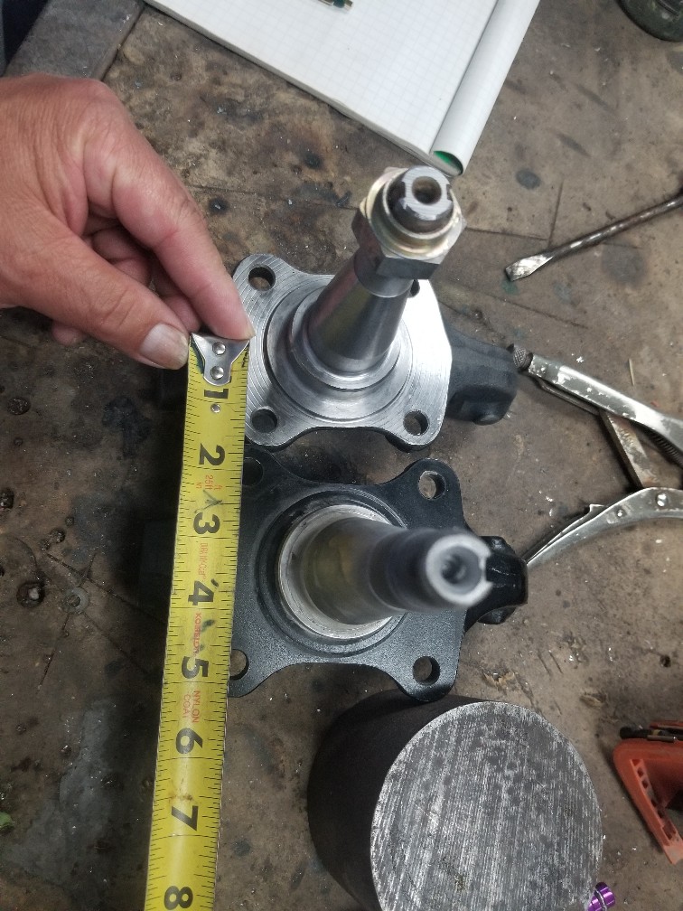 Please find attached pictures of the spindles that's pretty request. As you can see, there is approximately half an inch difference between the mounting holes both horizontally and vertically. As well the spindle itself is noticeably longer. The black colored one being the original. It was suggested by Mr. Fiat that the could be modified. However, when it involves critical suspension components, we believe they should never be tampered with as their integrity would be compromised....many thanks for the responses...