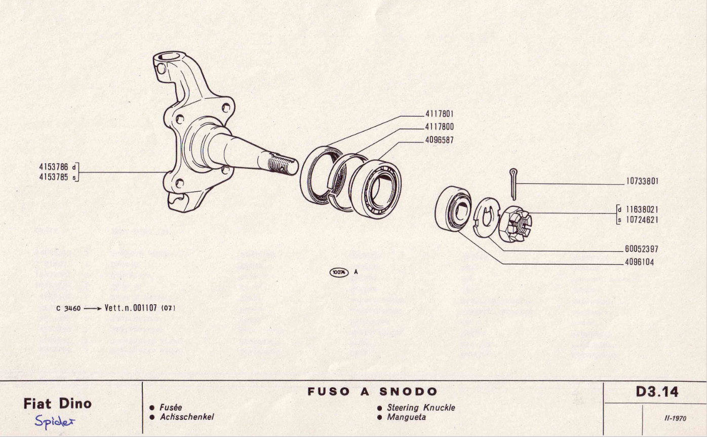 We are currently restoring a 1967 Fiat Dino 2000 Cabriolet. As to be expected, there are a number of parts that were required. A pair of front Axle Spindles were ordered from Mr. Fiat with fitment confirmed before hand. Regrettably, when we attempted to install them, there was 1/2" difference between the mounting holes and the spindles were shorter as well. Mr. Fiat's representative offered us a store credit as a resolution which we found acceptable.