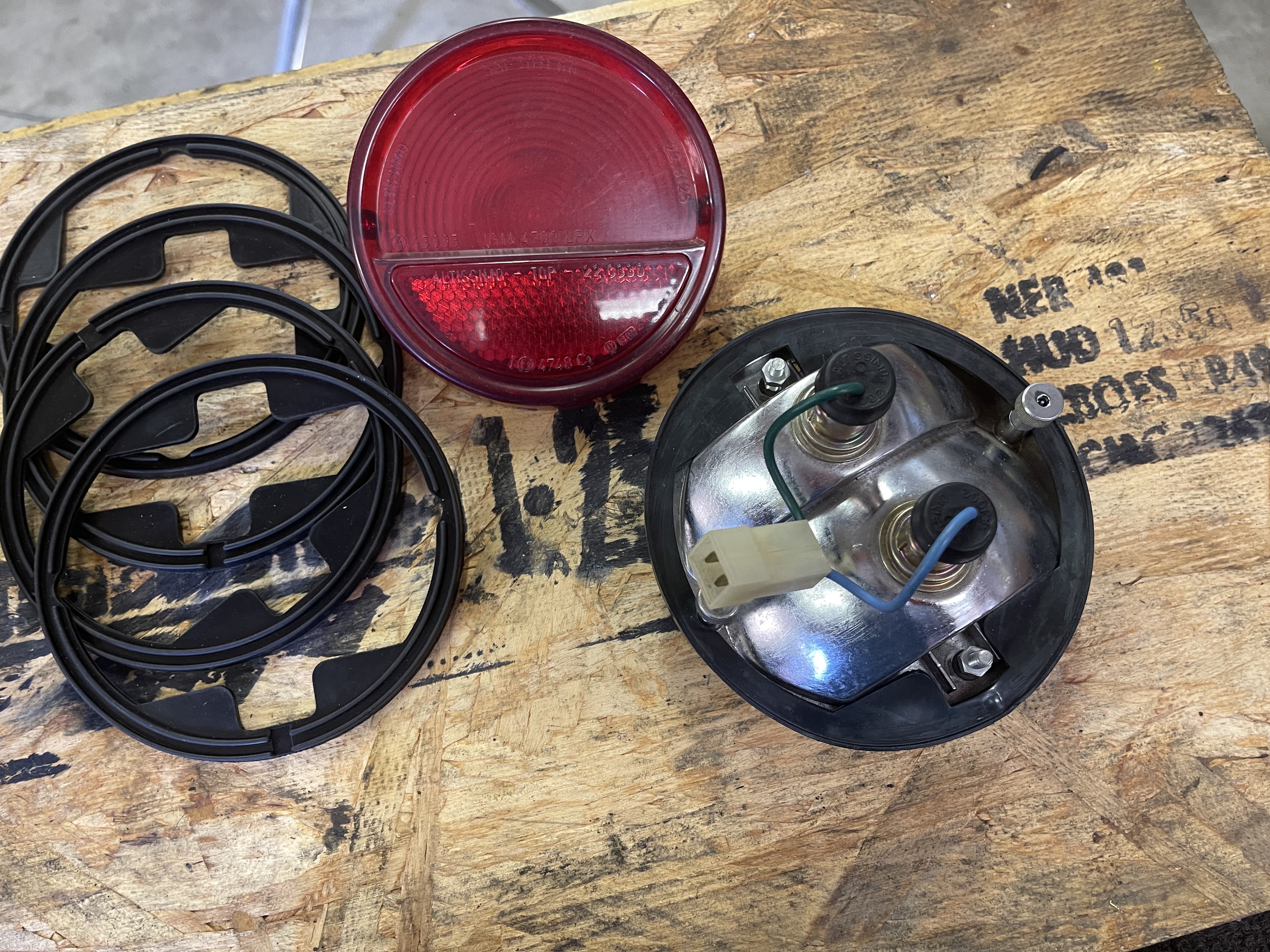 rear tail light assemblies.. one is nos the other a good used..