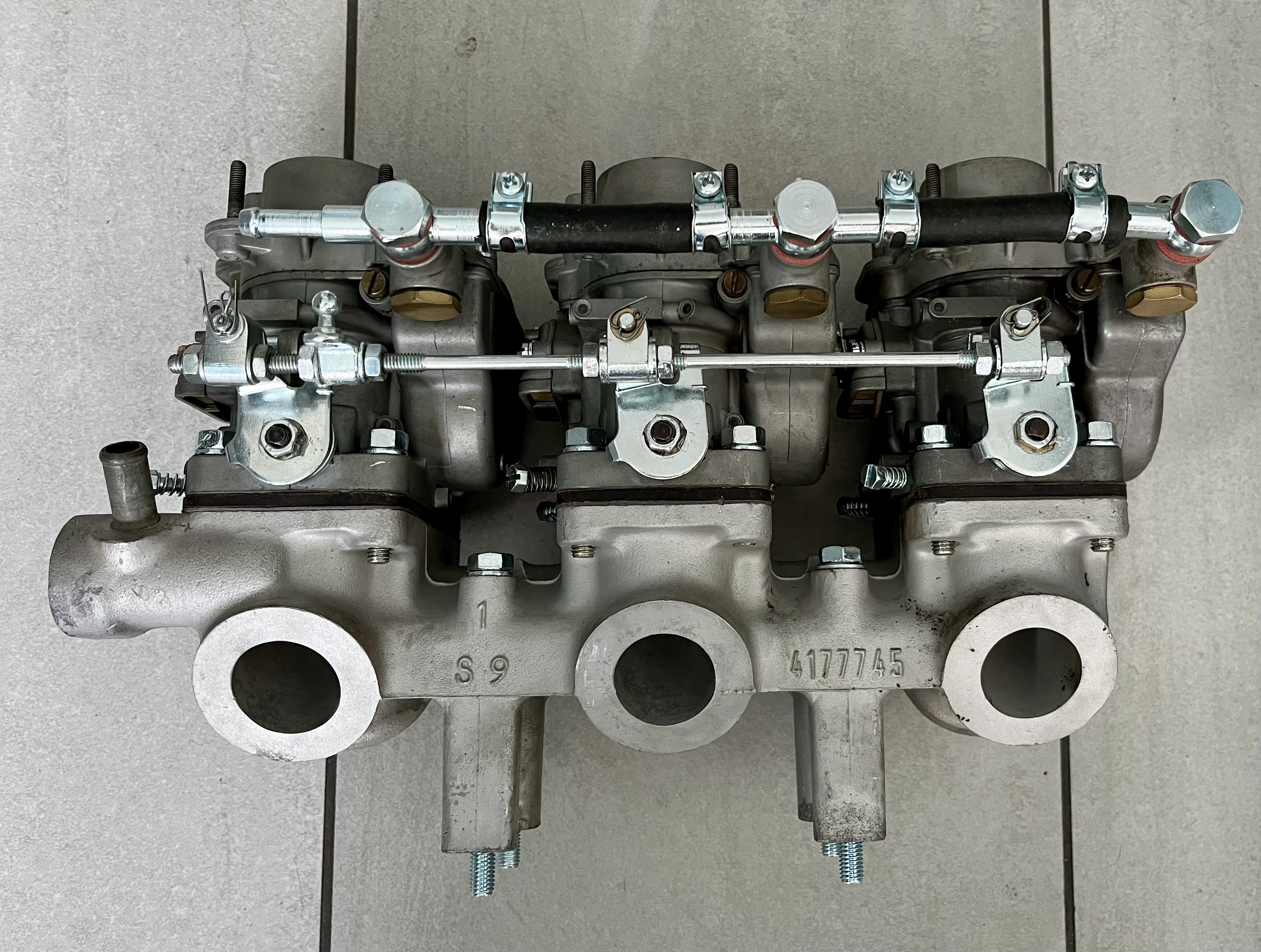 Offer a complete overhauled set of Weber DCNF 40 Carbs incl manifold.