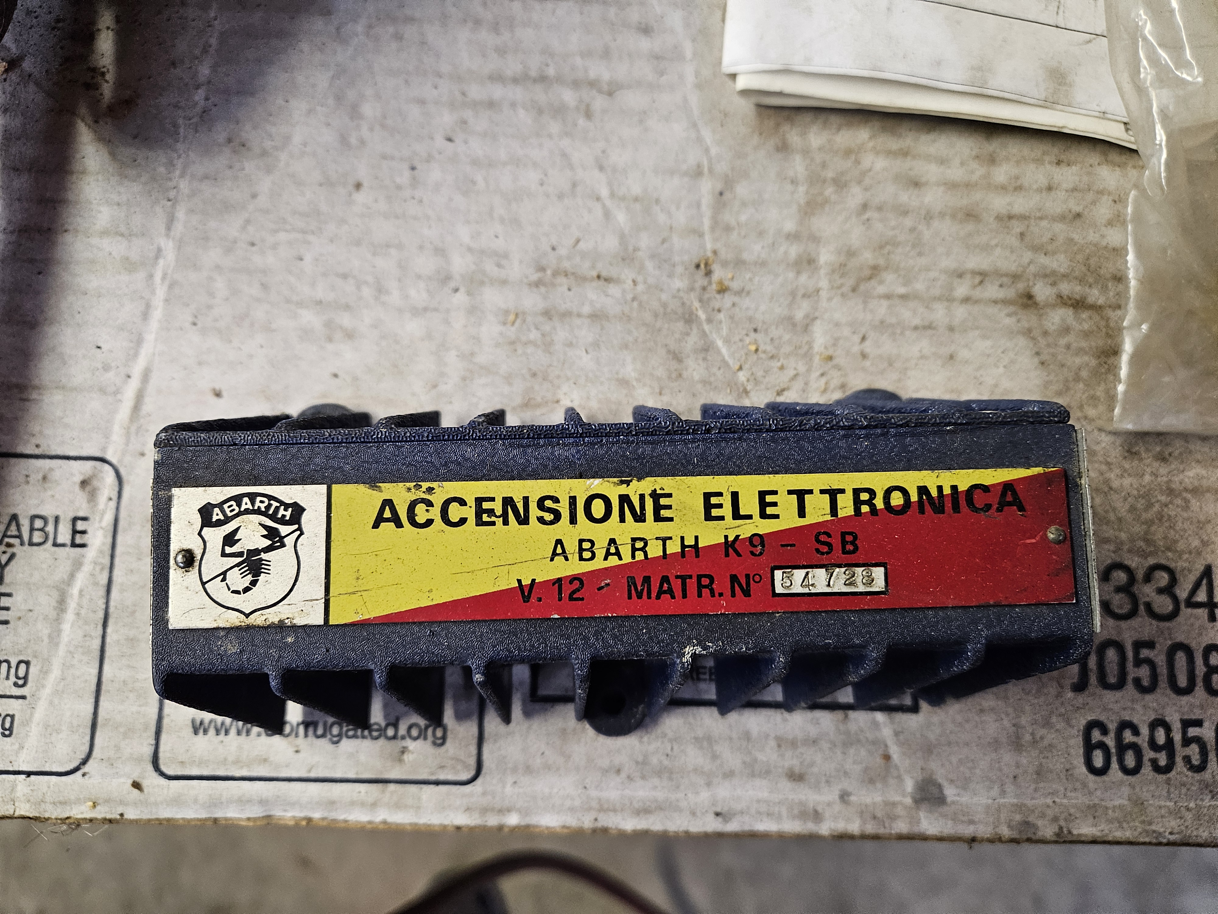 I have Seen the ignition box in the middle beide, it’s an aftermarket item, a kind of „Dinoplex replica“. Haven‘t seen the Abarth box before.