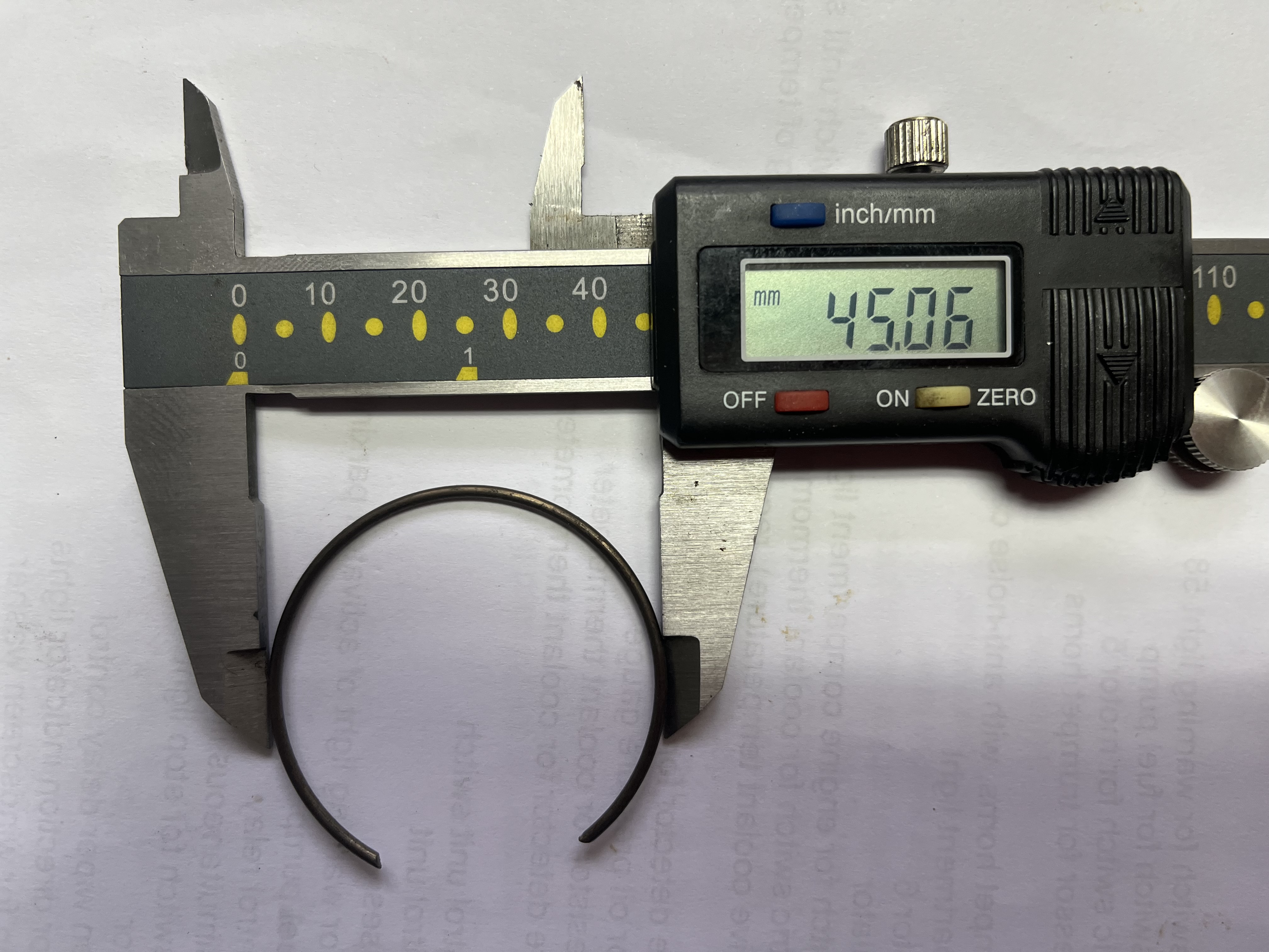 Snap ring, one end is yellow in the picture