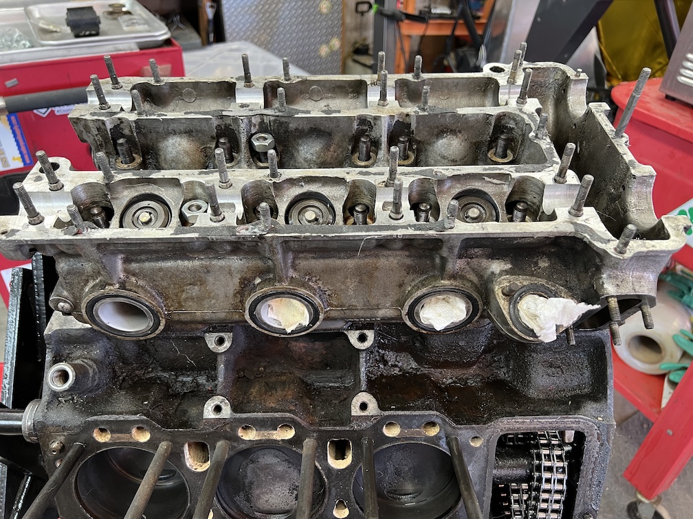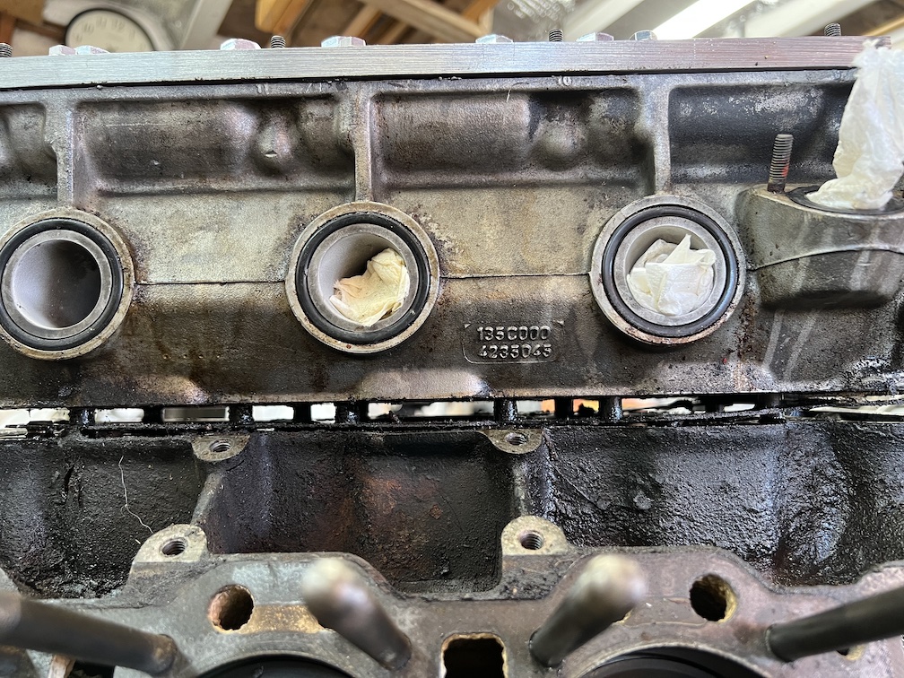Note that...main reason for removing the engine is coolant seen in the oil when draining it (chocolate milkshake look), water vapour in the oil fillers when hot, oil analysis finding antifreeze components in the oil. And I had seen coolant in the #6 cylinder sparkplug well, so I had reason to believe the Left cylinder head (4,5,6) was the problem.