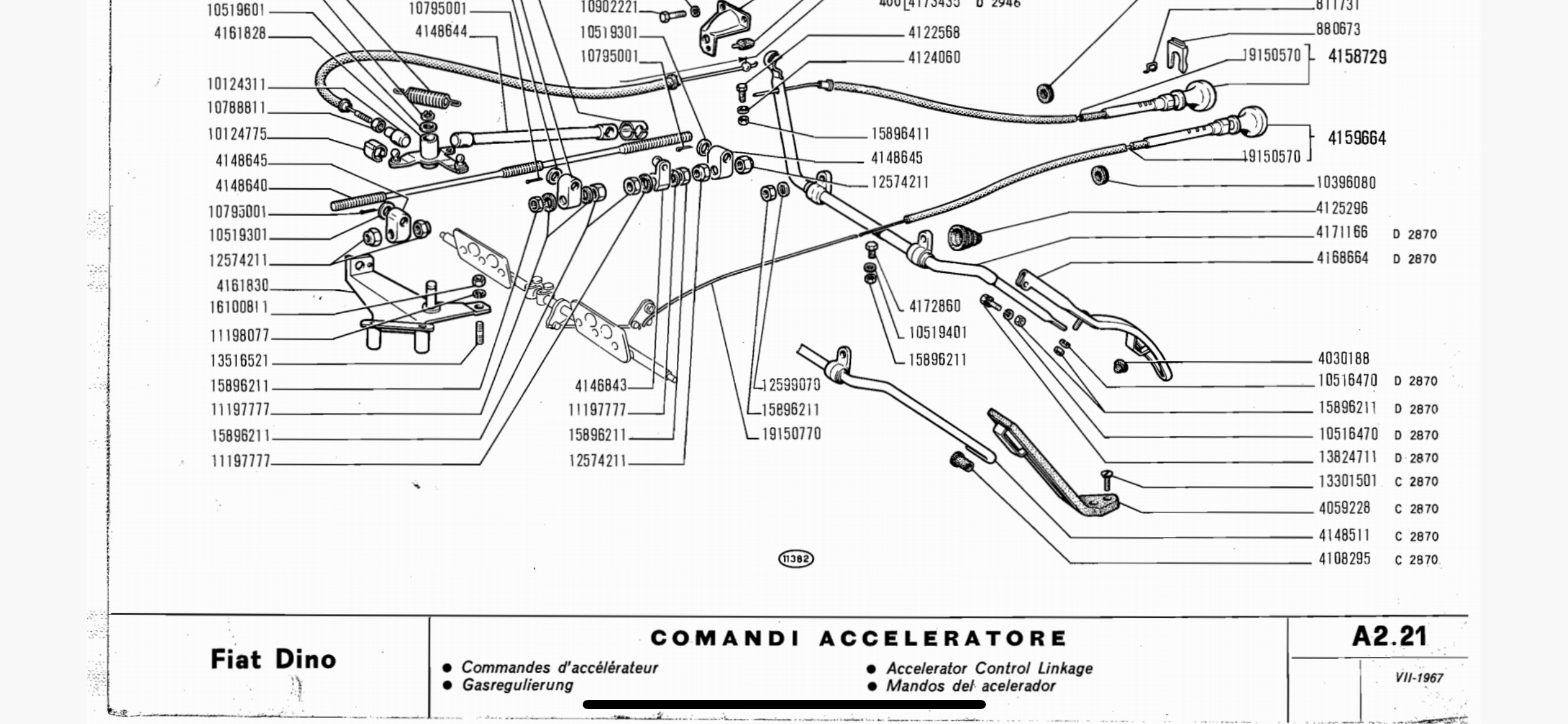 I own a 1968 Fiat Dino Spider 2000, chassis #903. The car is nicely original, with just a couple of parts to be sorted. A previous owner has removed the choke / manual throttle unit which I am now fitting back. I need to to find the correct levers, bracket & fitment location.