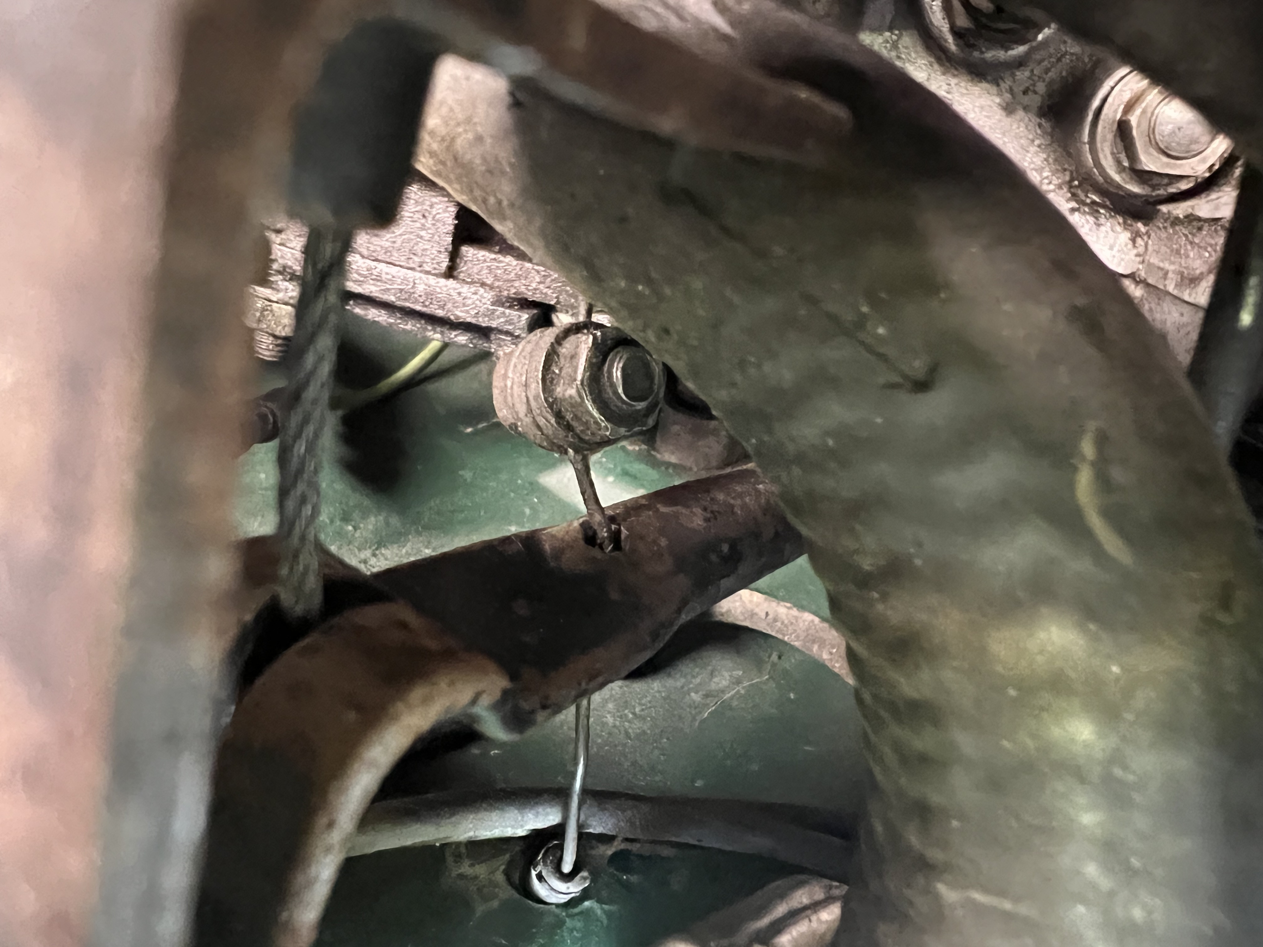 My 1967 spider has the two pull knobs to the left of the steering wheel and neither seem to be connected to the engine. This is a picture of a broken wire coming out of the firewall in the engine bay (near the throttle cable) and I suspect it’s for the hand throttle. Does anyone have a picture of where this connects to the engine when properly connected?